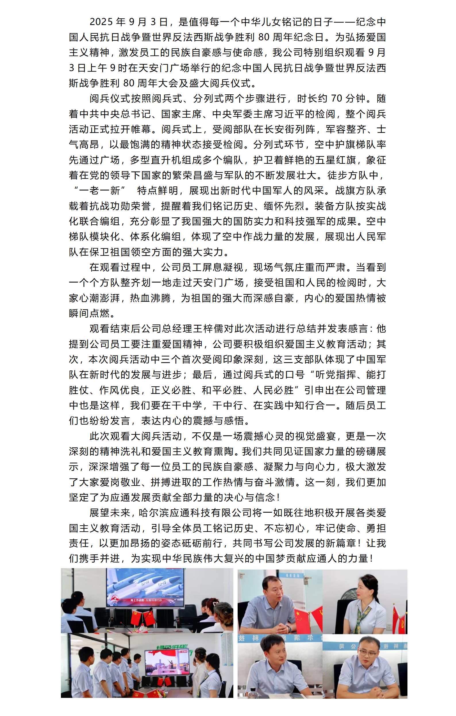 共忆峥嵘,见证今朝——哈尔滨应通科技有限公司见证国之力量,凝聚奋进力量!